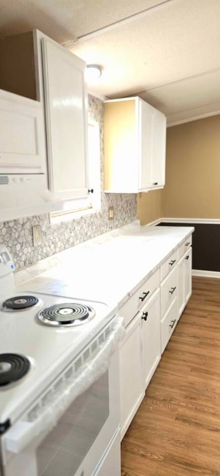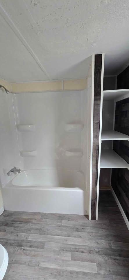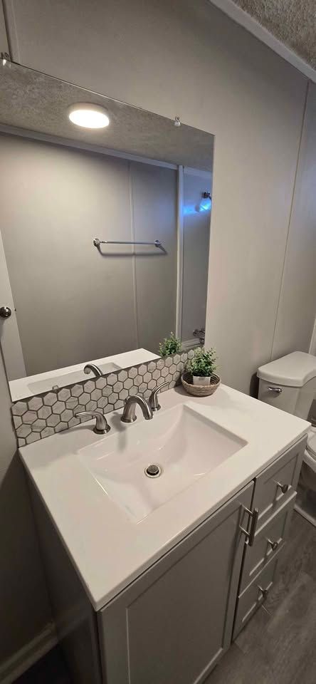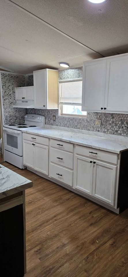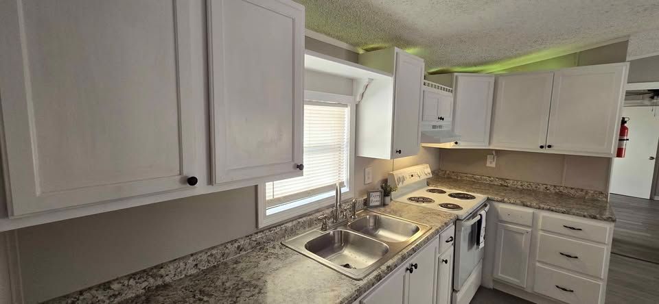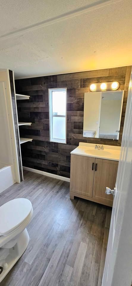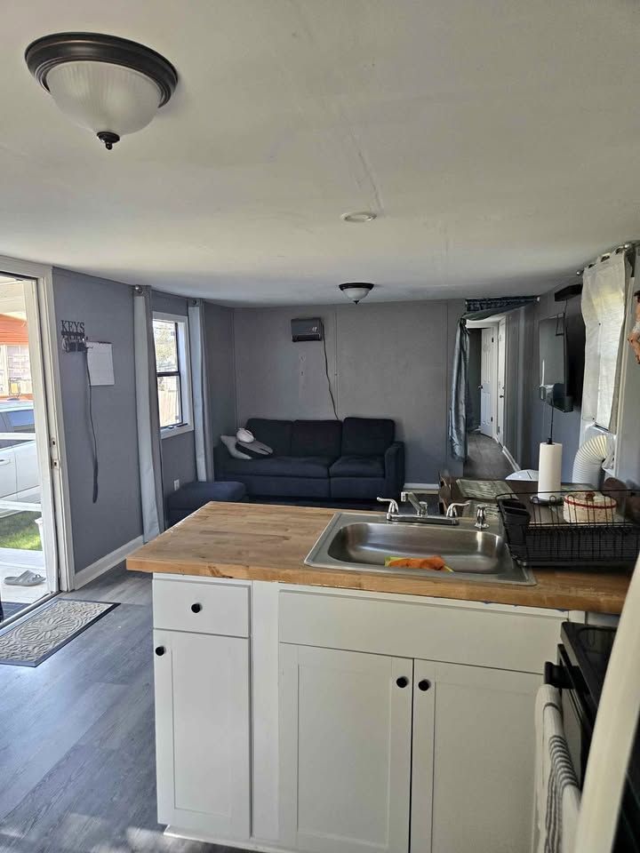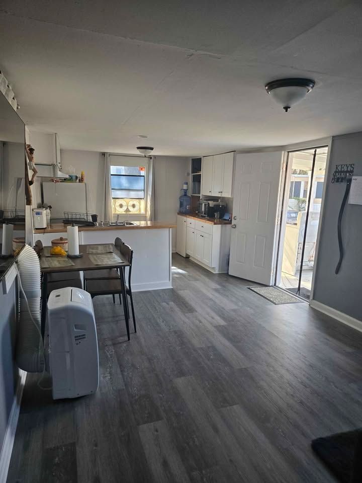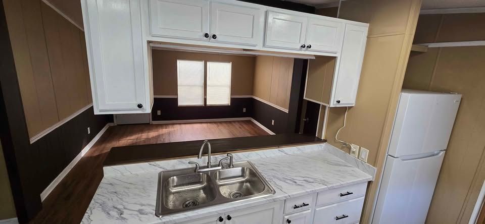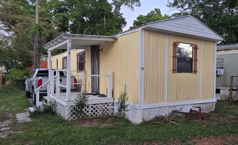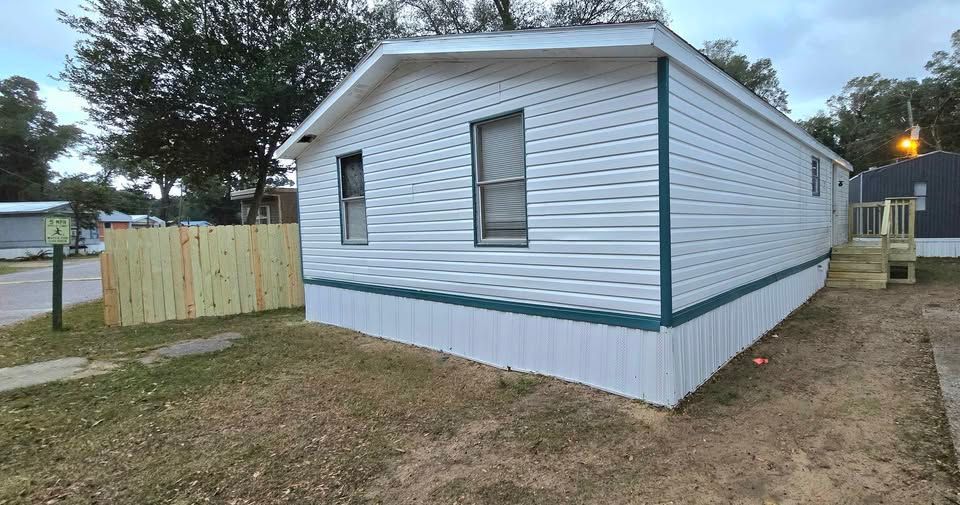 Newly remodeled 2 bedroom, 1 and half bath home for sale. Has new plank flooring, cabinets, counter tops, vanities, ceiling fans, light fixtures, and windows blinds. Home has W/D hookups, Central Air, and comes with stove & refrigerator. All sales are cash and home is required to stay in Oaklodge MHP. Lot rent is $400 a month and includes trash service, lawn maintenance and basic Wi-Fi.