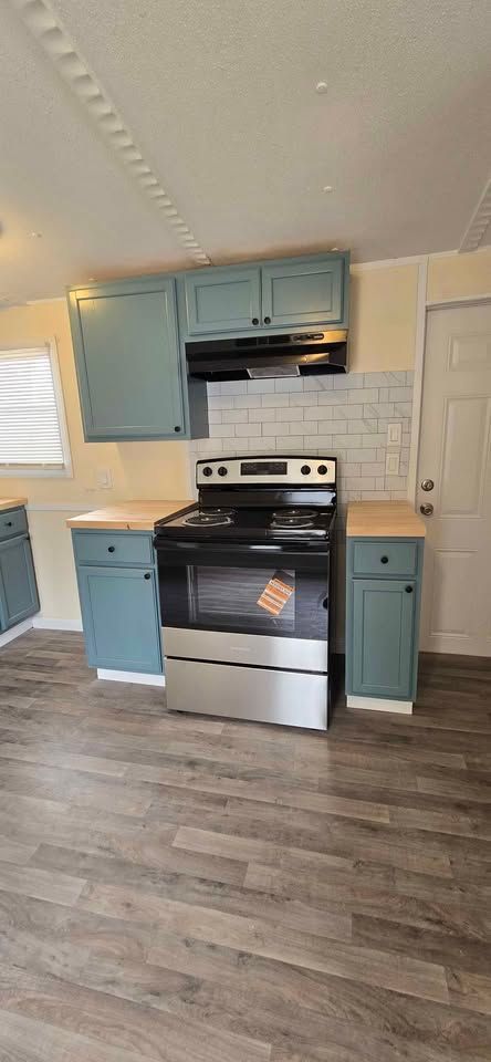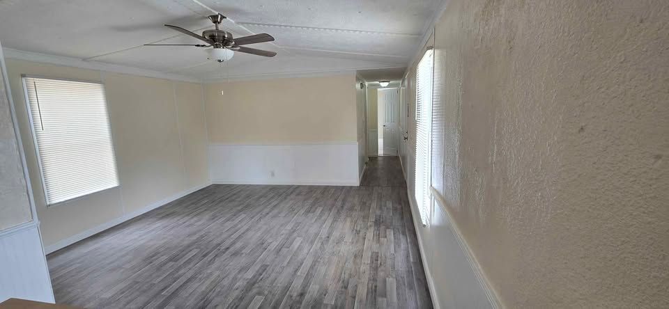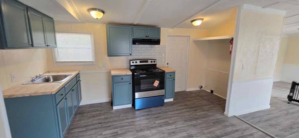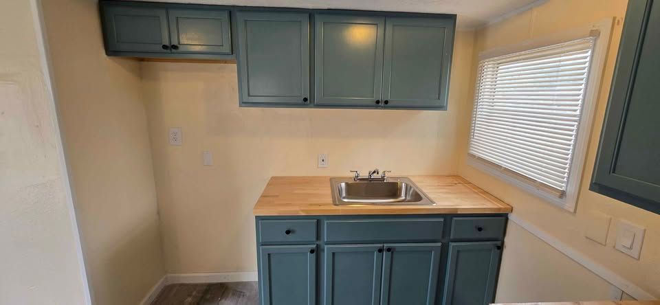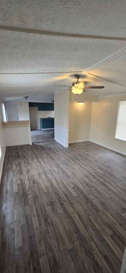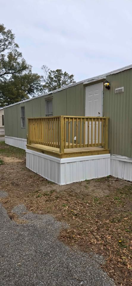 Newly remodeled 3 bedroom, 2 bath, home with W/D hookups. New flooring, cabinets,counter tops, blinds, bathroom vanties, mirrors, light fixtures,front and back steps. Home includes new stove and refrigerator. Lot rent is $400 a month plus water (billed separately) and includes trash service, lawn maintenance and basic Wi-Fi.