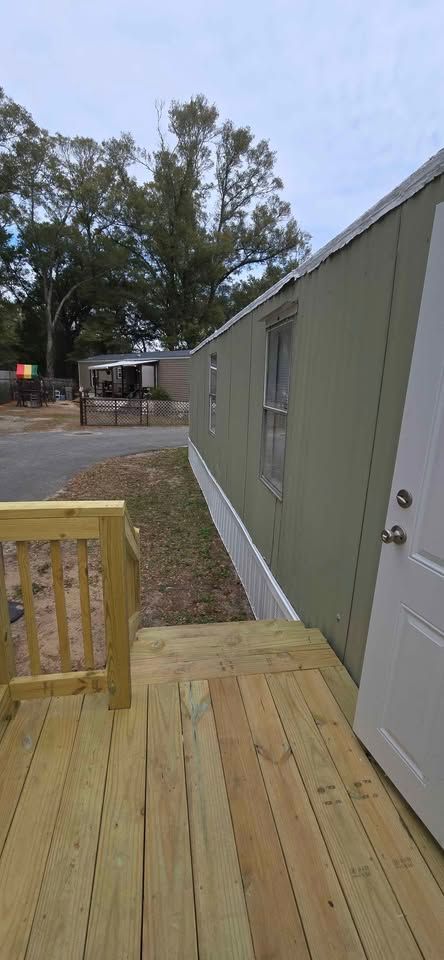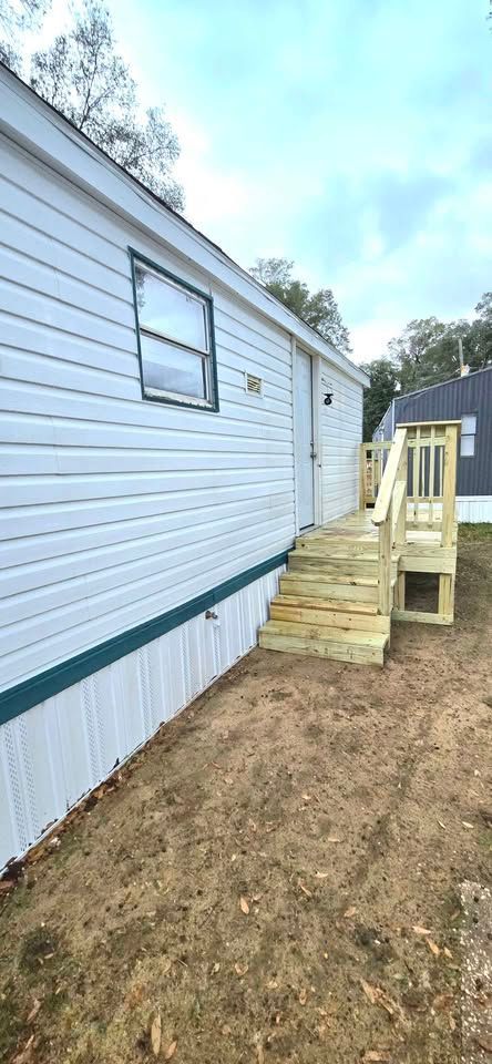 Newly remodeled double wide mobile home. 3 Bedrooms, 2 Baths. Has central air/heat system, with W/D hookups. New flooring, light fixtures, blinds, front porch and steps. Also includes new stove and refrigerator. Lot rent is $400 a month and includes trash service, lawn maintenance and basic Wi-Fi.