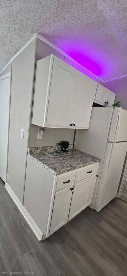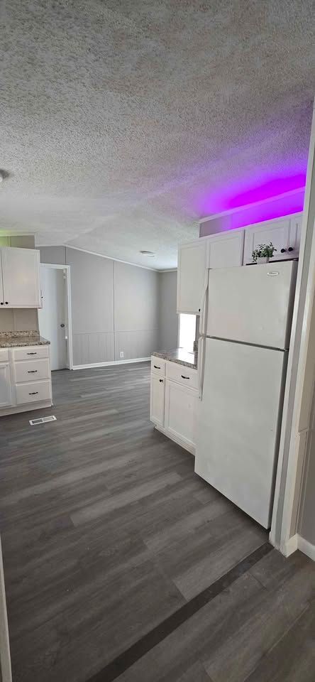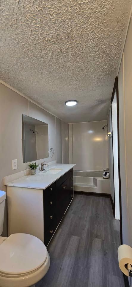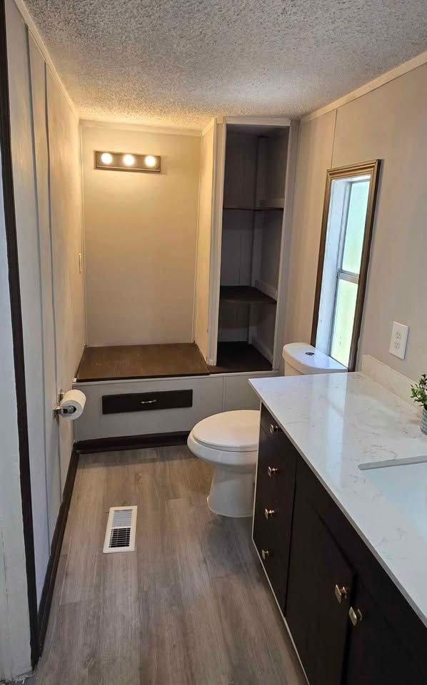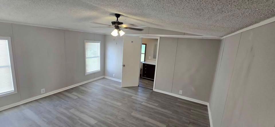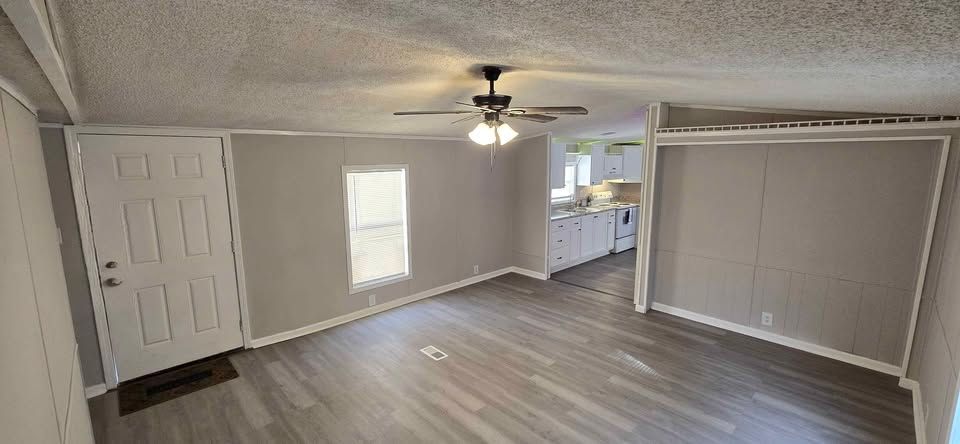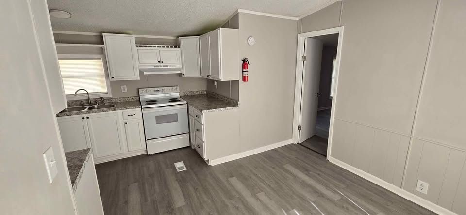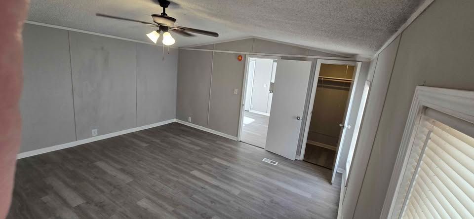 Newly remodeled 2 bedroom, 2 full bath home, with separate dining area & laundry room. Has new plank flooring, kitchen cabinets, counter tops, vanities, ceiling fans, light fixtures, and windows blinds. Comes with central air, stove and refrigerator. Lot rent is $400 a month and includes trash service, lawn maintenance and basic Wi-Fi.
